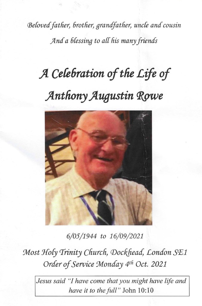 The funeral Masses for two of our old classmates, Tony Rowe and Eamonn O’Malley, took place recently, may they rest in peace. We bid them a fond farewell and attach below copy of the covers of their Mass leaflets as a memento.