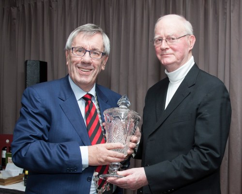 Fr. Myles was elected ROW Person of the Year 2017 and received the PV Doyle trophy from President Brian Duncan. Fr. Myles made an inspirational acceptance speech which he started by quoting the words of James Connolly “the weakest link is ignorance” and he continued, in a riveting address, to remind his audience of the important contributions made by people like Nano Nagle, Catherine McAuley, Mother Mary Aikenhead and Blessed Edmond Rice in breaking the chain of ignorance, which made slaves of the people of Ireland, in their times and later. Fr Myles said that attending a Christian Brothers school like Westland Row inspired him to become a priest.