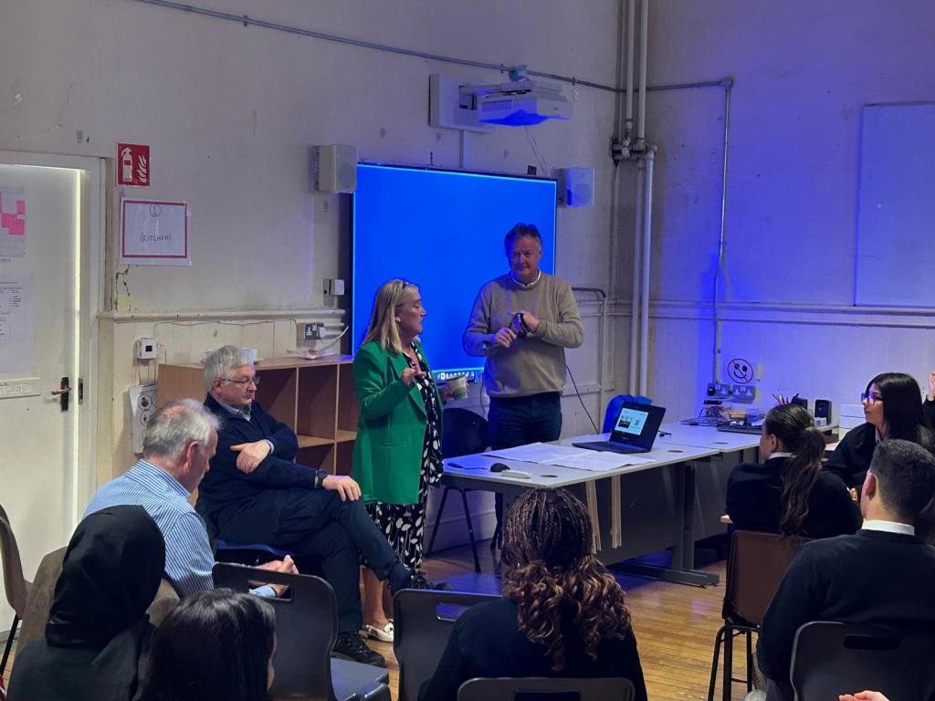School Principal, Kate Byrne introduces representatives of Atlantic Youth Trust to explain the project to the students.