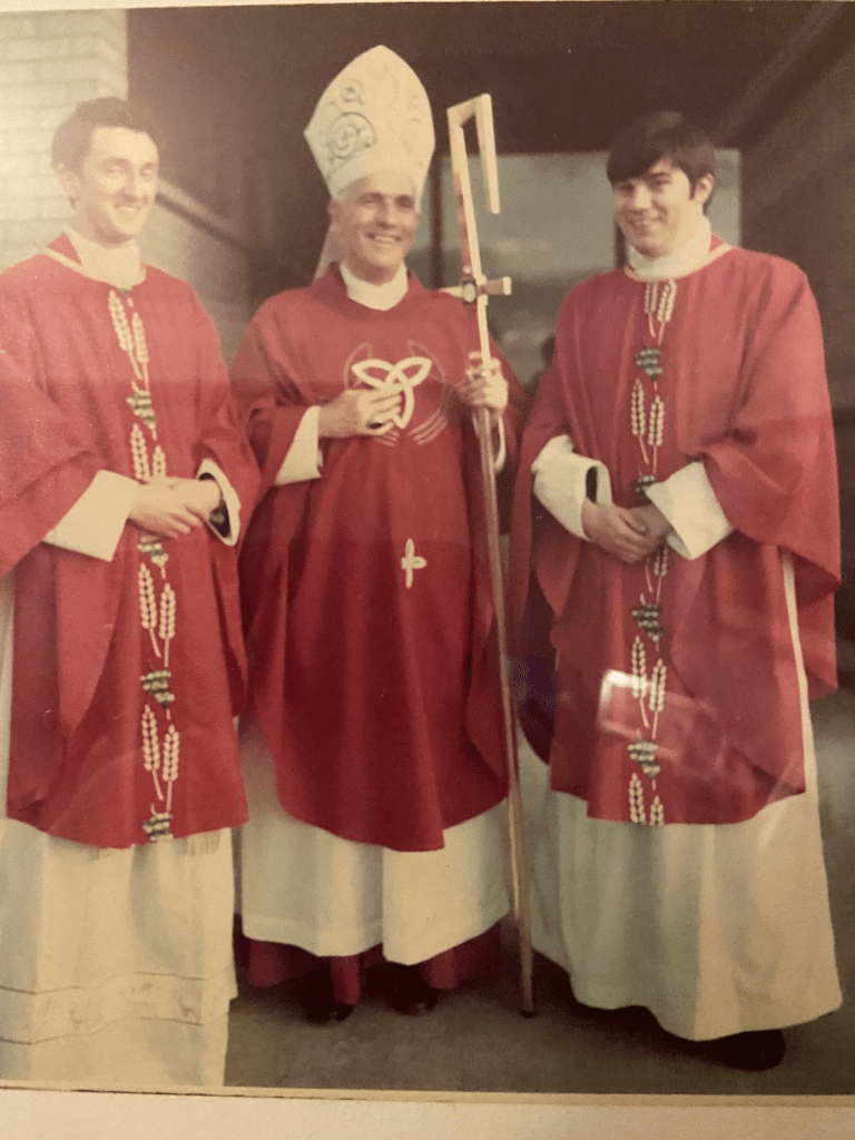 2. Left Canor John McNamara (past O’Connell’s School) Bishop James Kavanagh and Monsignor Dan O’Connor, Ballinteer Church, on 16th June 1975.